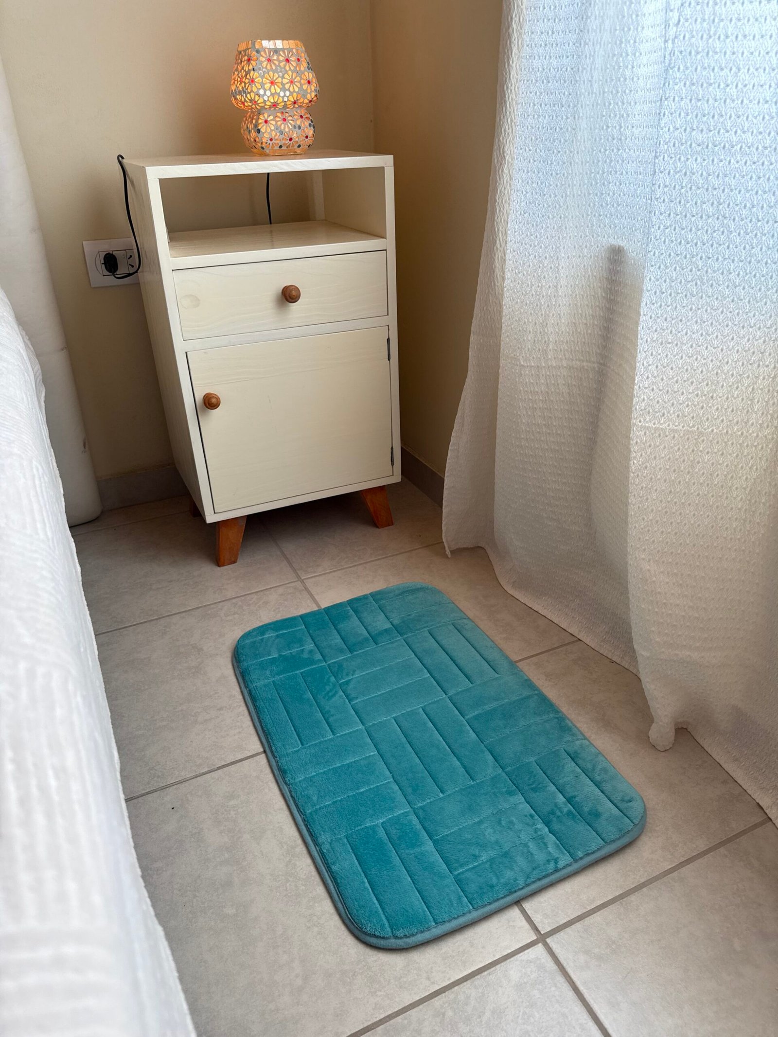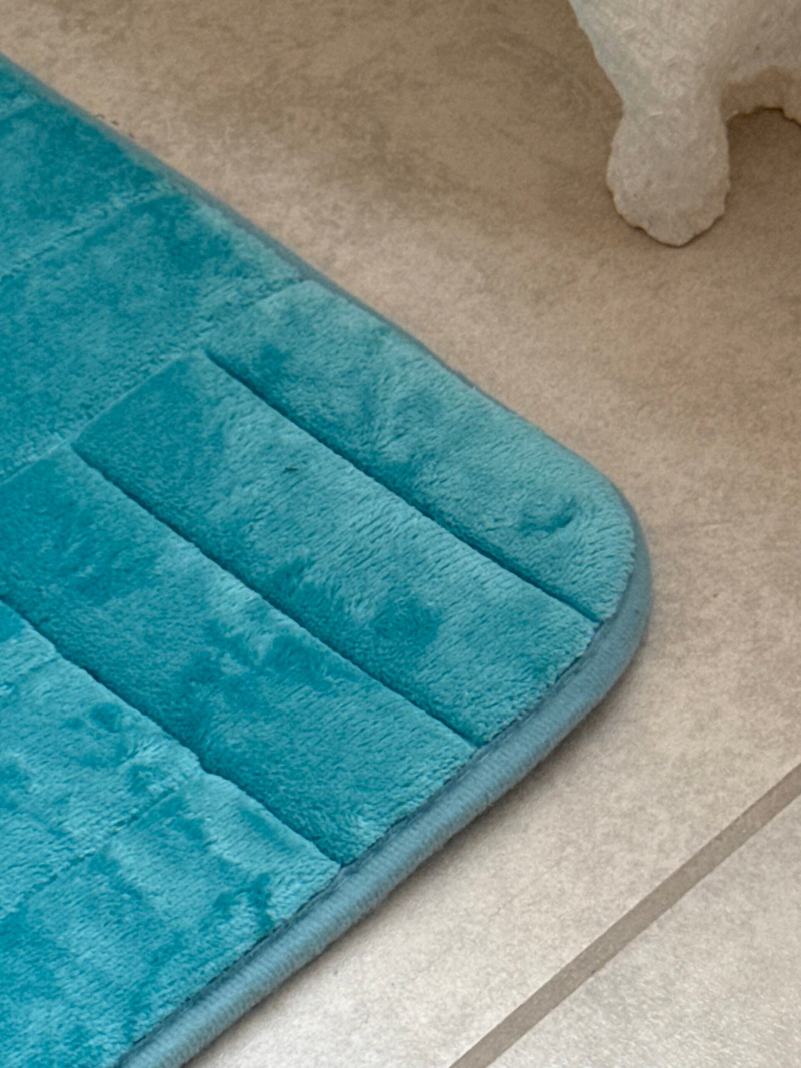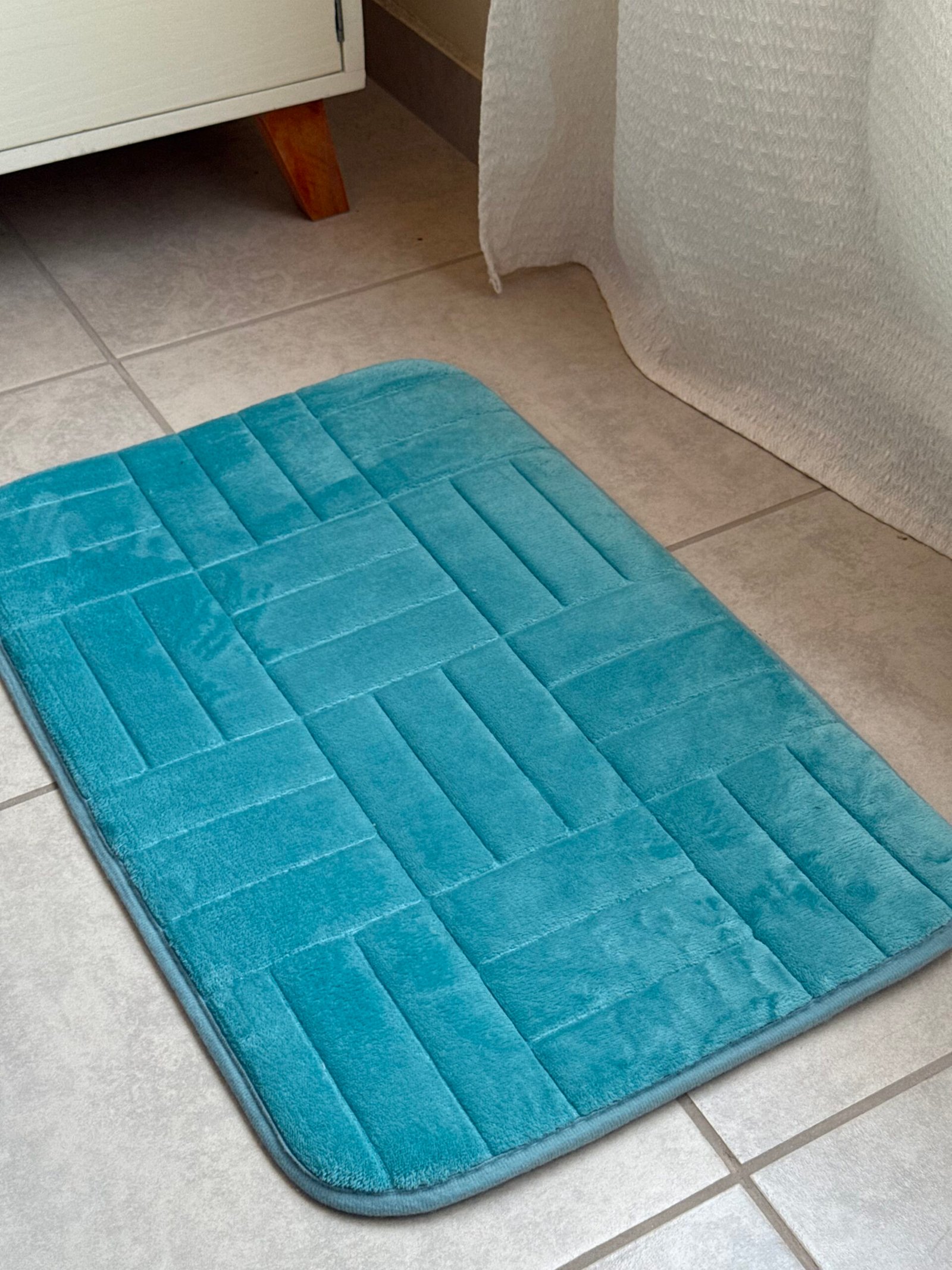 Color: Turquesa Medidas: 40cm x 60cm. Con antideslizante. Apta para el lavarropas. Super suave y acolchonada al tacto.