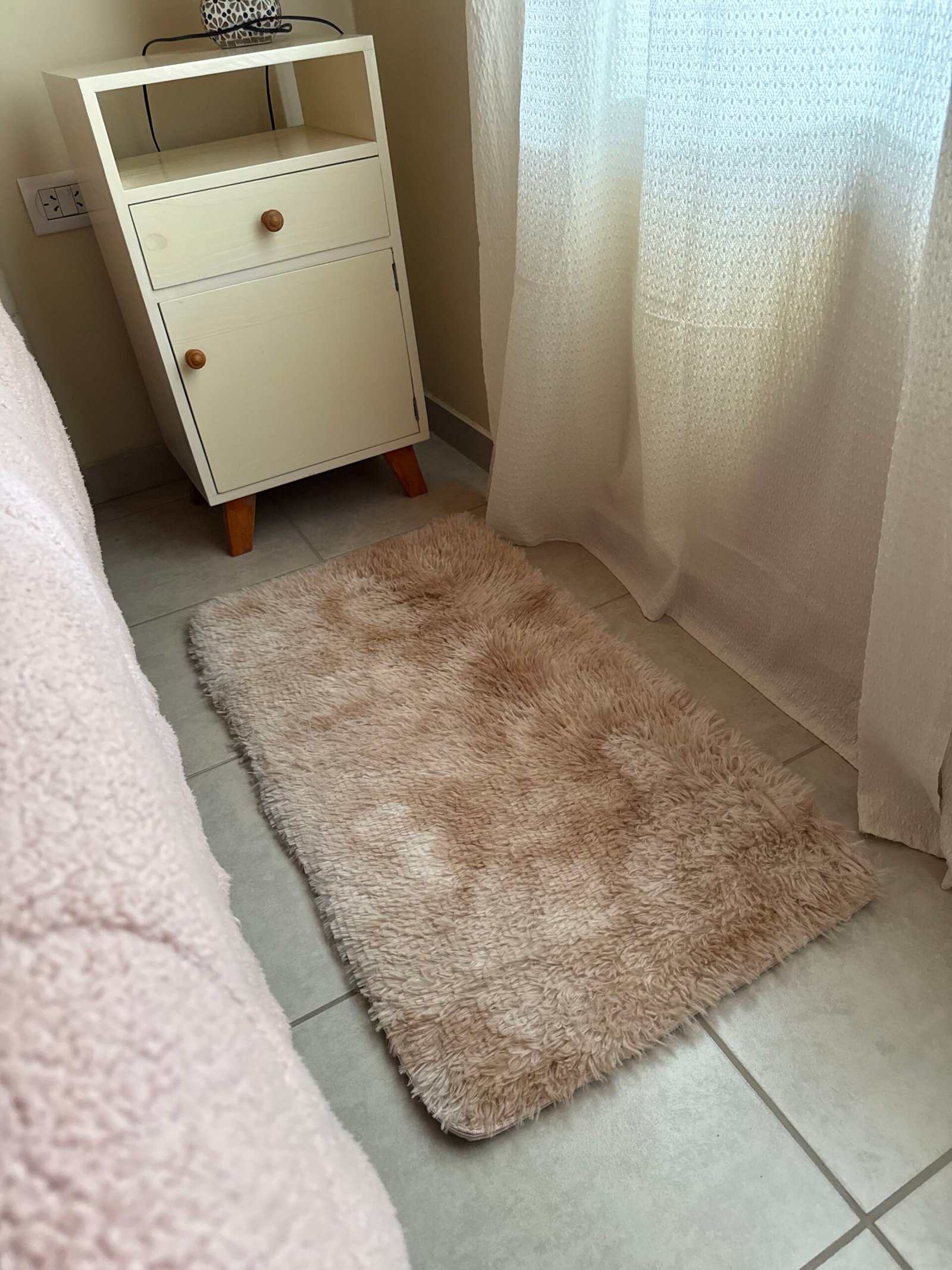 Color: BEIGE Medidas: 50 cm x 80 cm. Con antideslizante. Super suave.