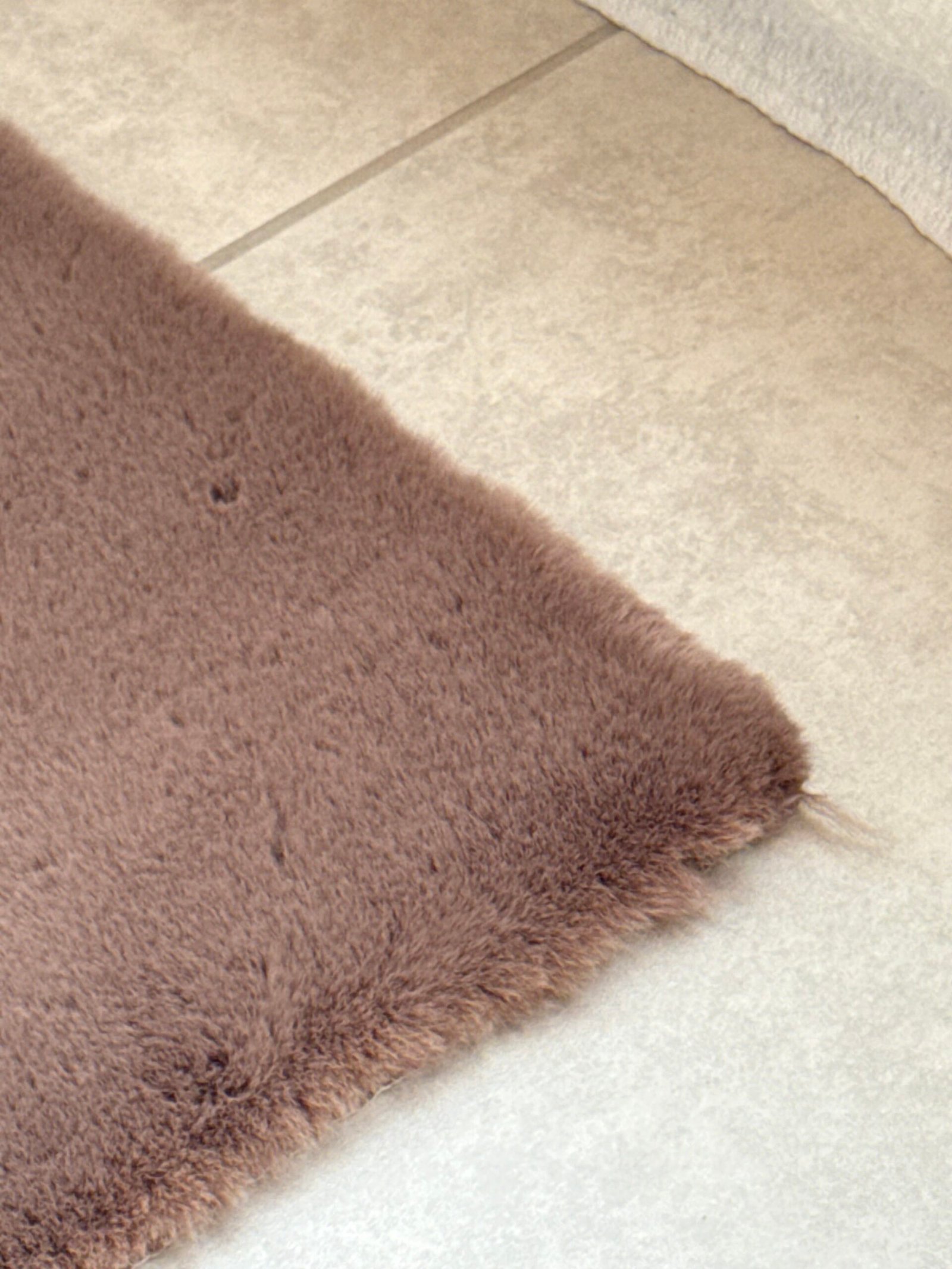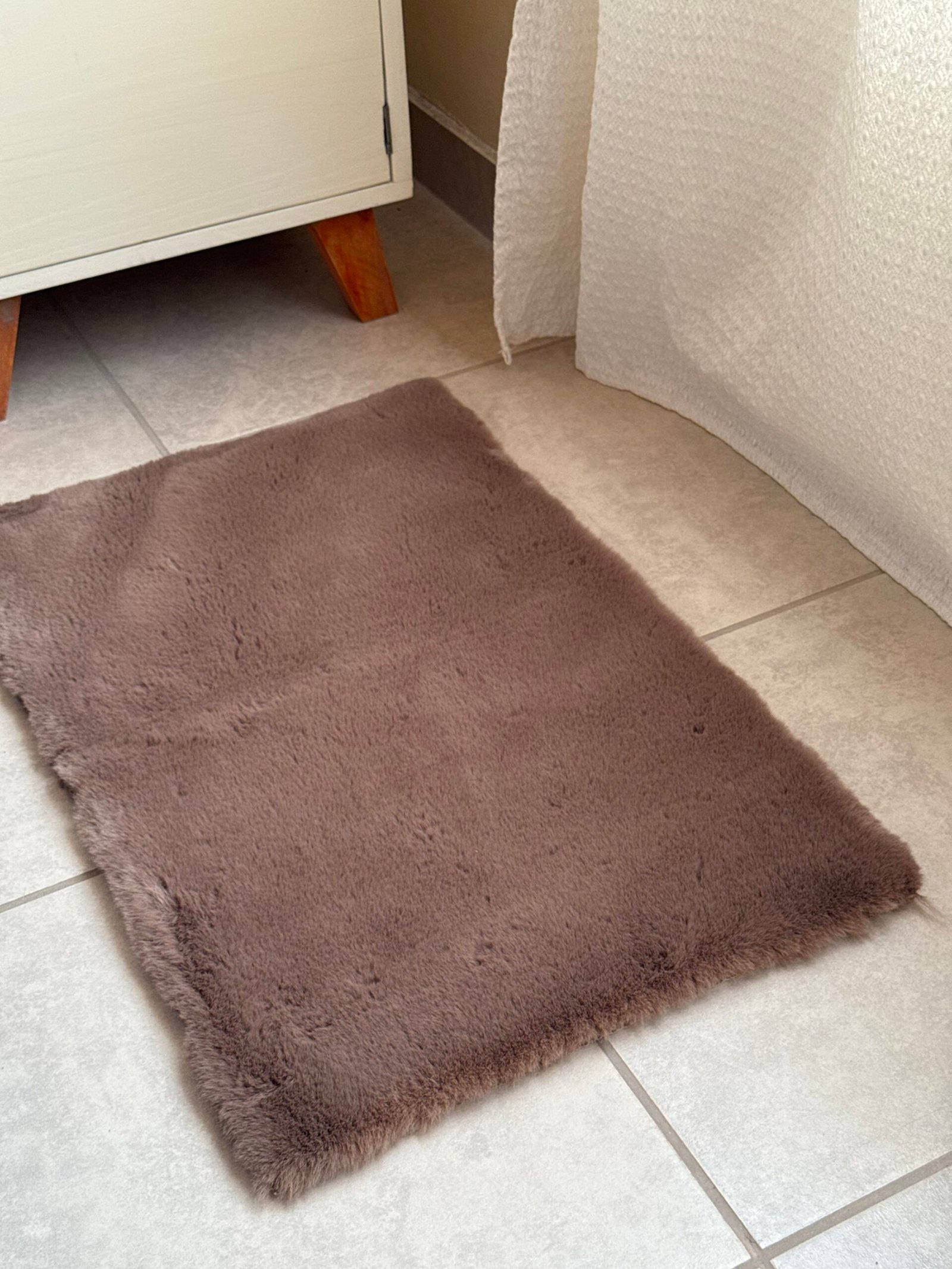Color: MARRÓN Medidas: 40 cm x 60 cm. Con antideslizante. Super suave, pelo corto, piel de conejo.