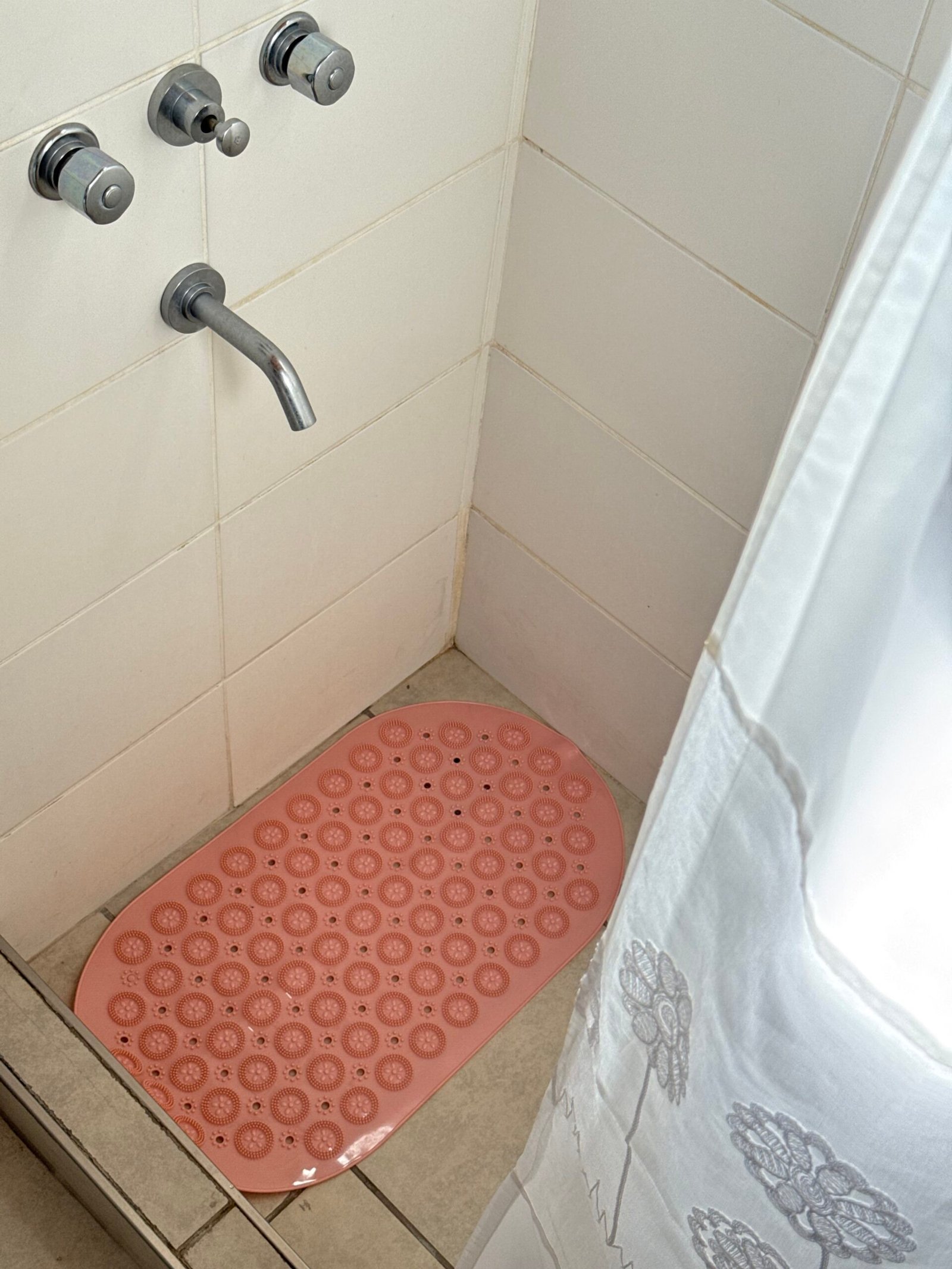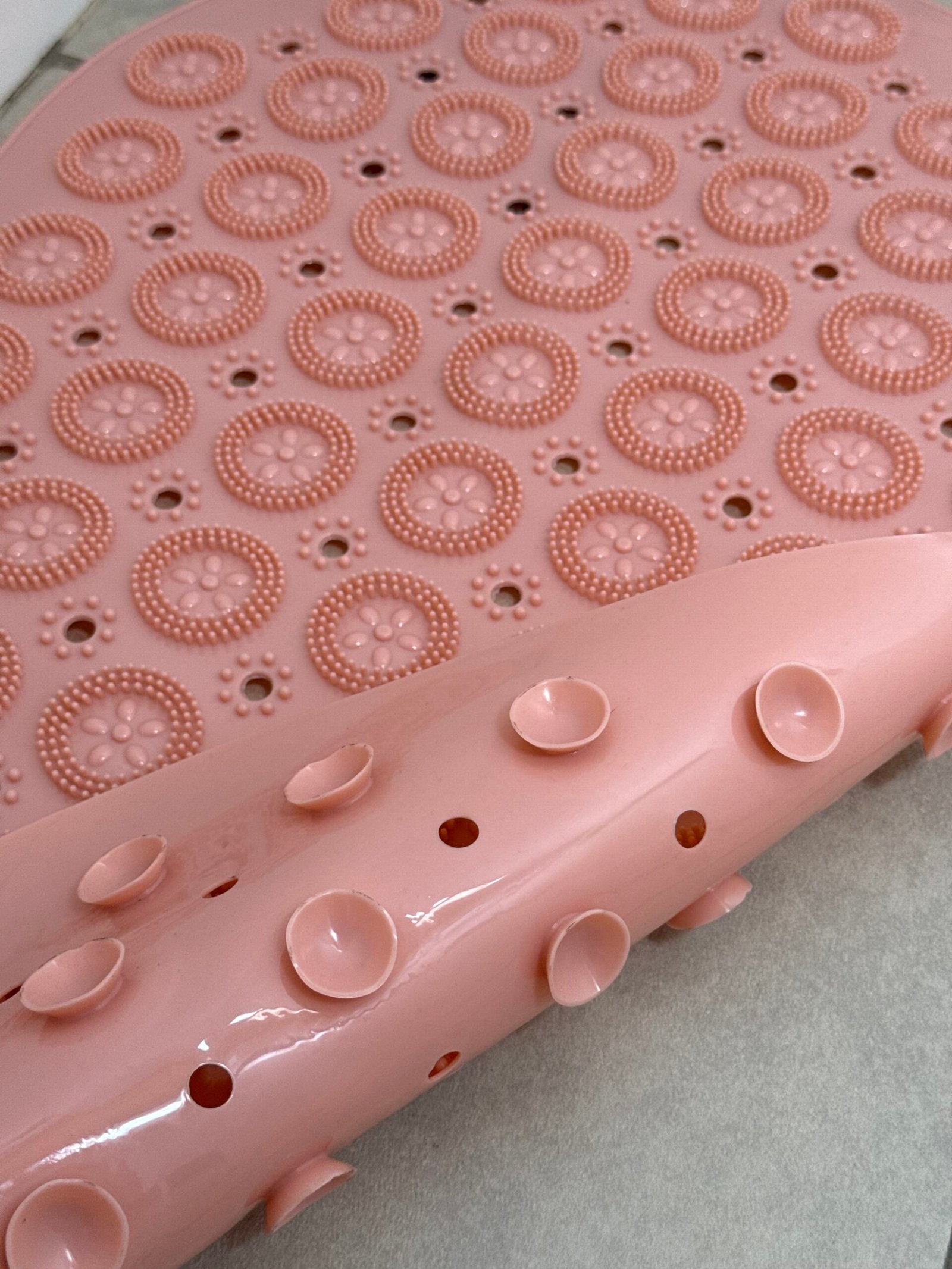 ALFOMBRA PVC CON SOPAPA CON MASAJEADOR Color: SALMÓN MEDIDAS: 40 cm x 60 cm. Antideslizante.