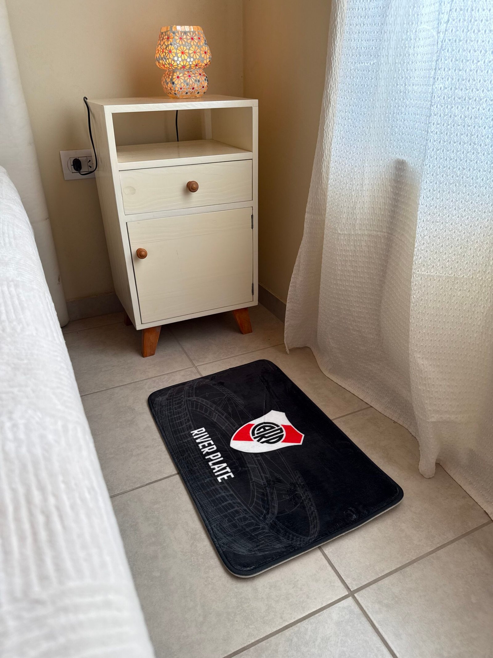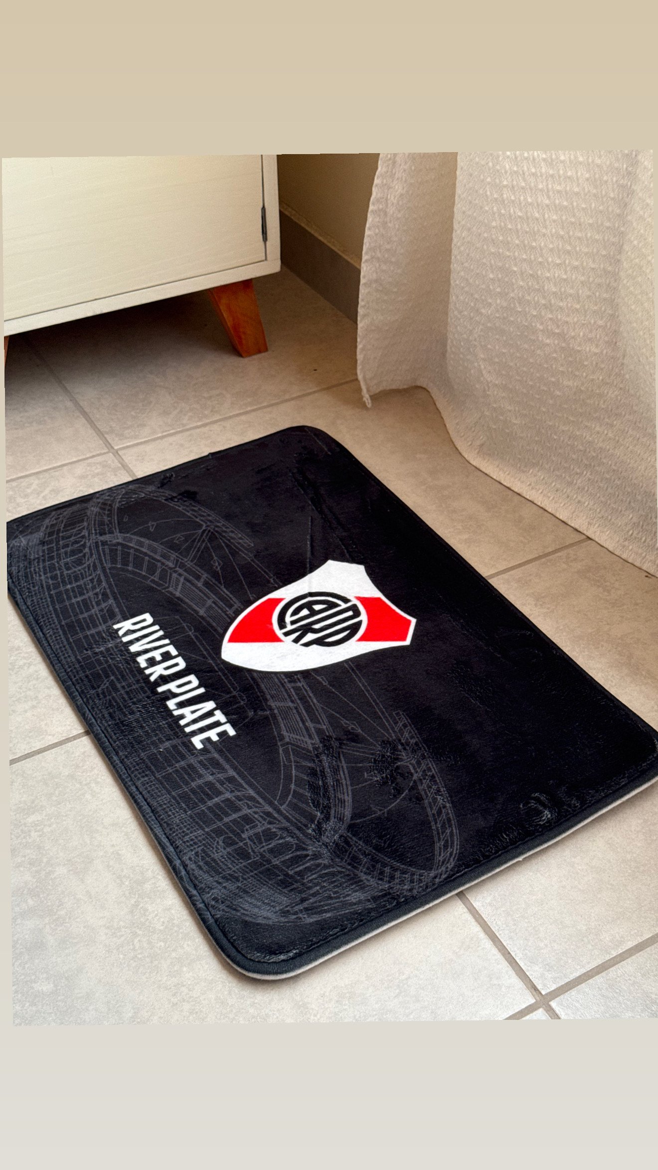 RIVER PLATE MEDIDAS: 40 cm x 60 cm . Antideslizante. Hipoalergénica Super absorbentes. Apta para lavarropas. Ideal para colocar en diversos espacios. Ideal para los fanáticos del Futbol.