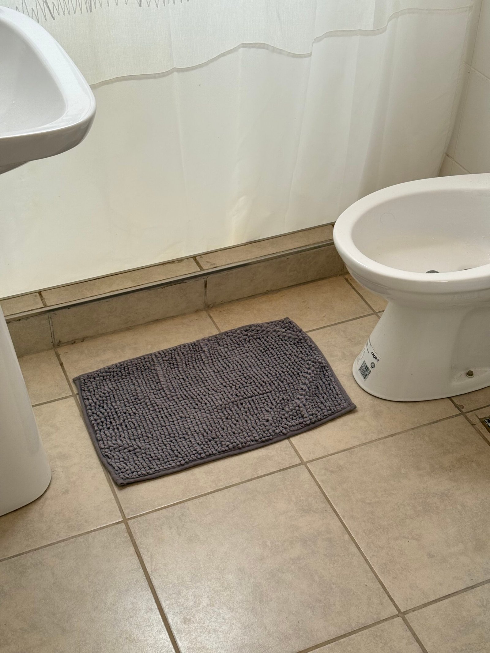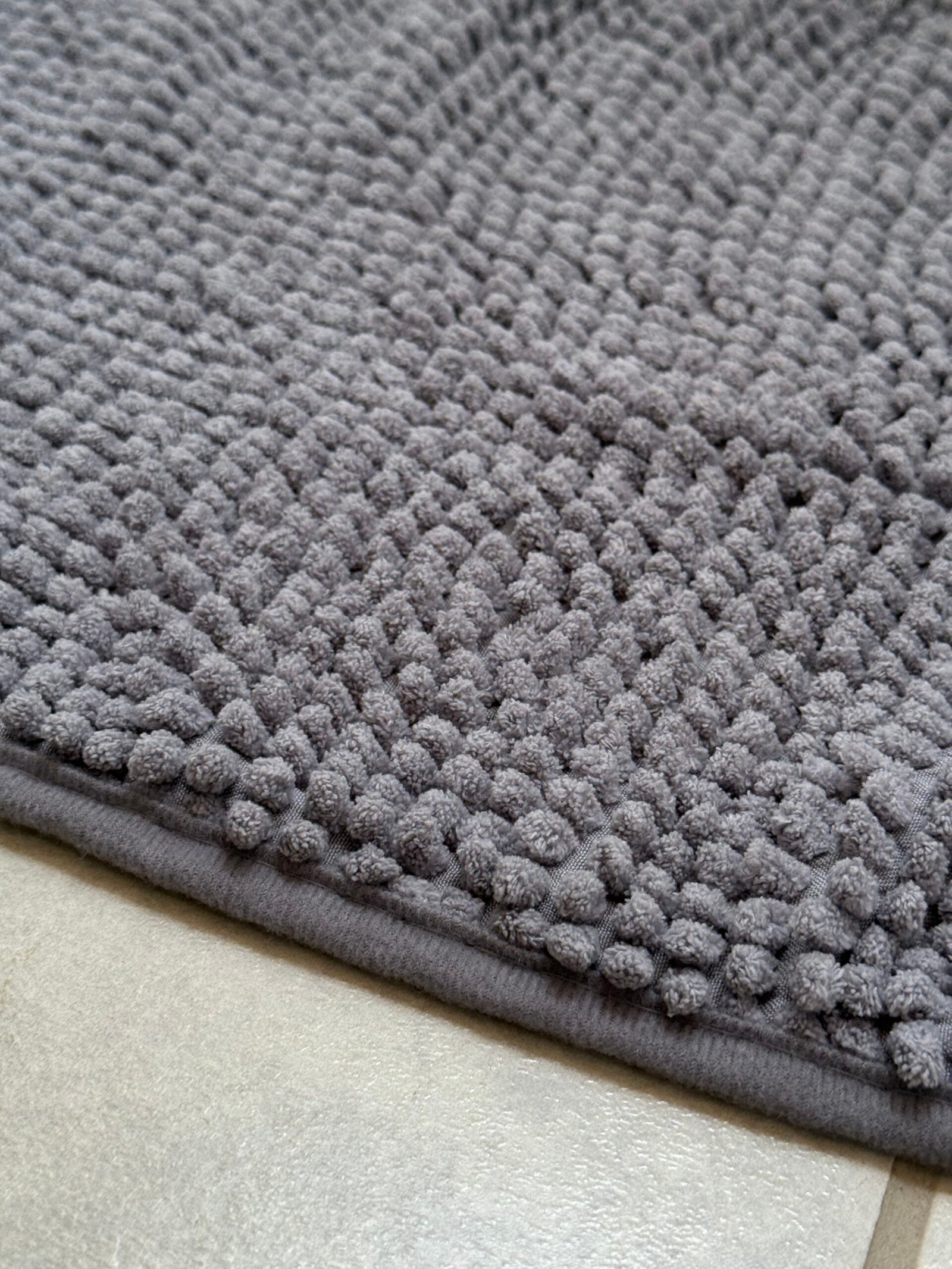 ALFOMBRA SHAGGY POMPÓN COLOR: GRIS ANTIDESLIZANTE MEDIDAS: 40 cm x 60 cm