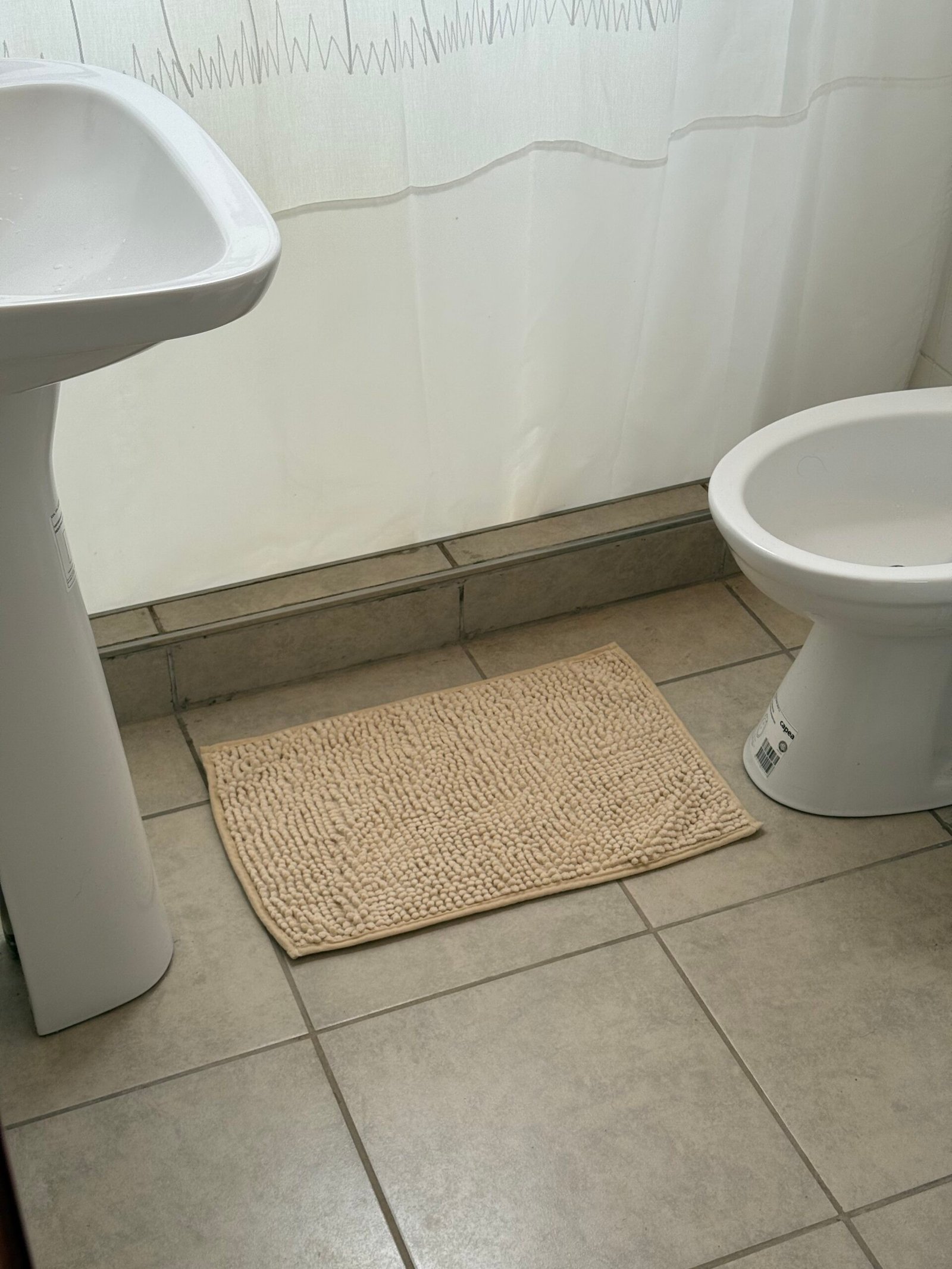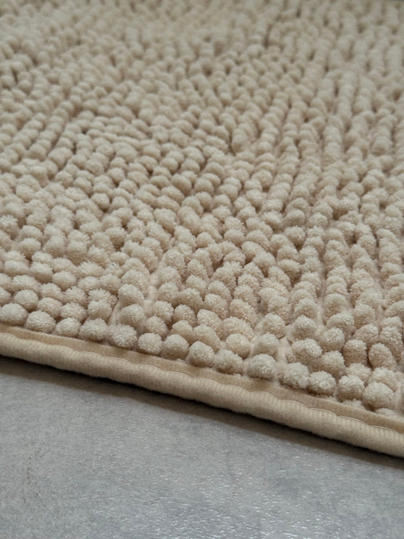 ALFOMBRA SHAGGY POMPÓN COLOR: NATURAL ANTIDESLIZANTE MEDIDAS: 40 cm x 60 cm