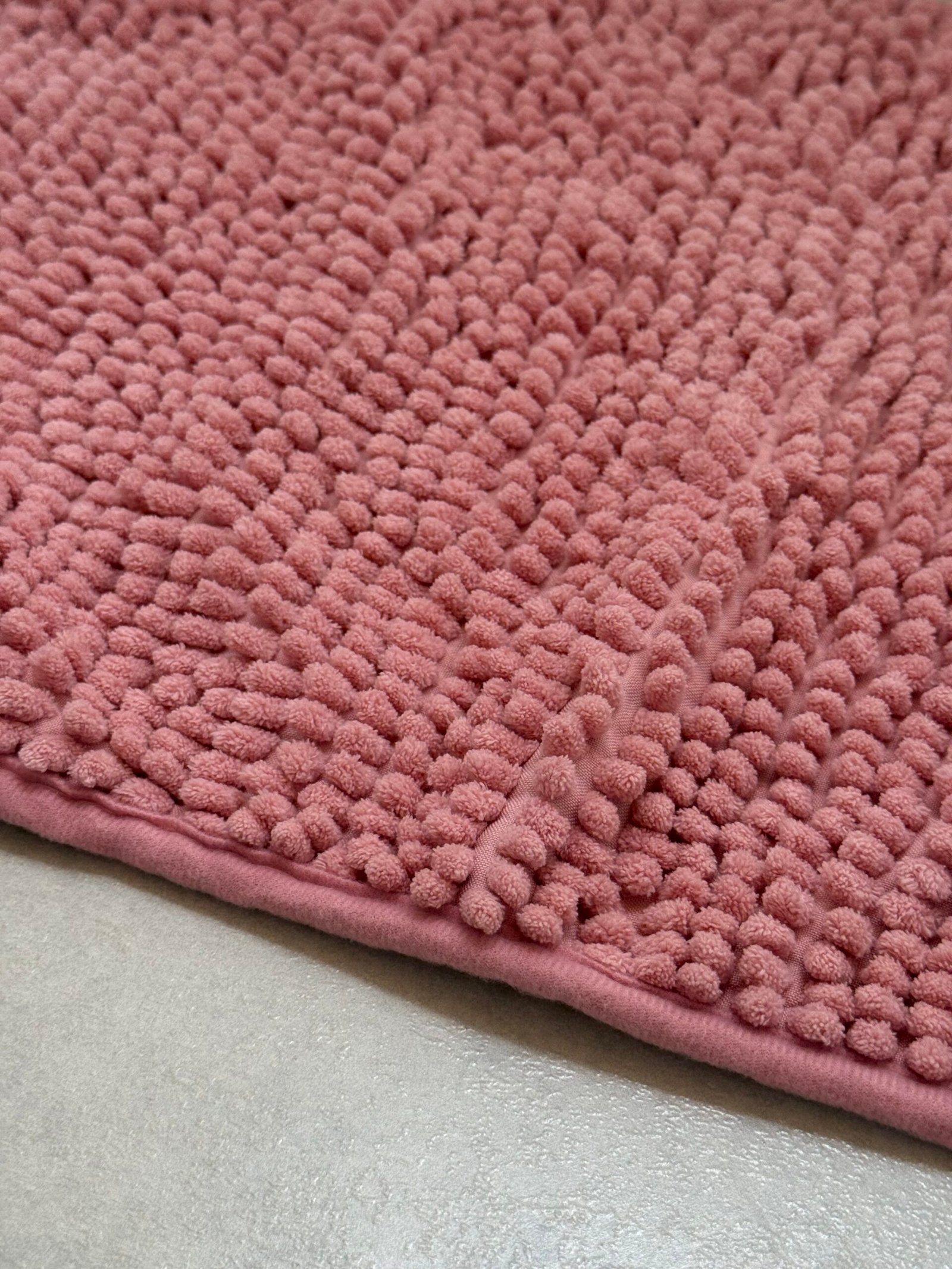 ALFOMBRA SHAGGY POMPÓN COLOR: ROSA ANTIDESLIZANTE MEDIDAS: 40 cm x 60 cm
