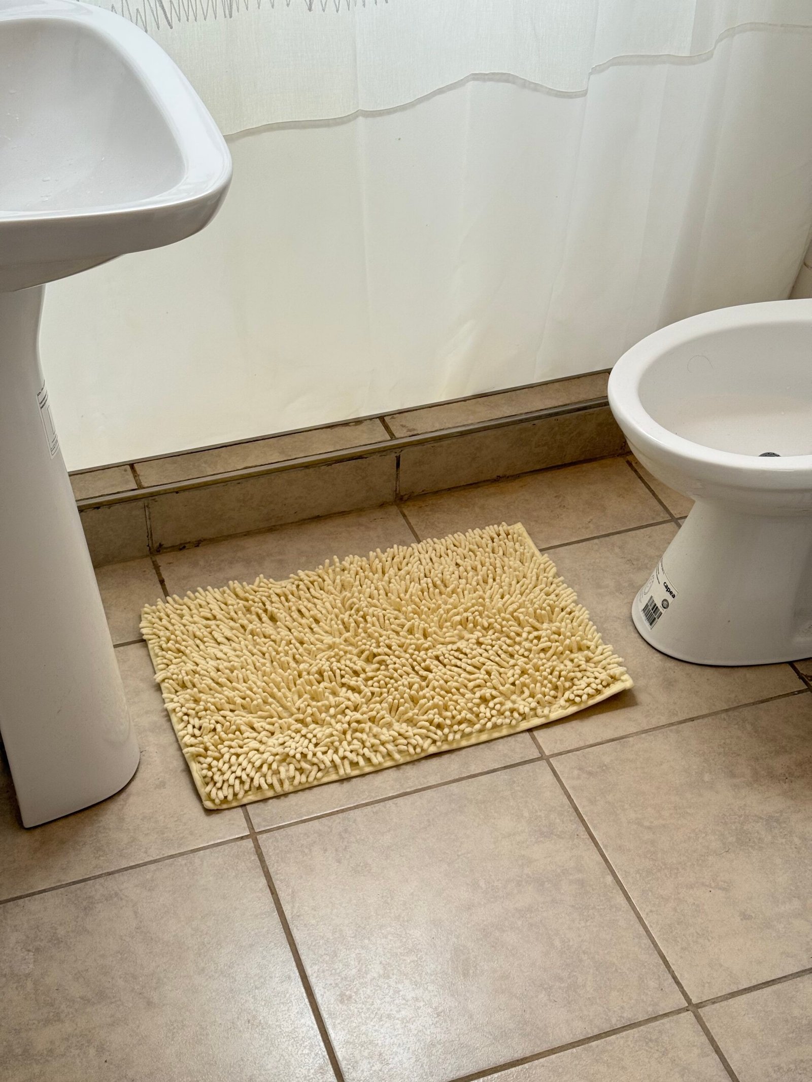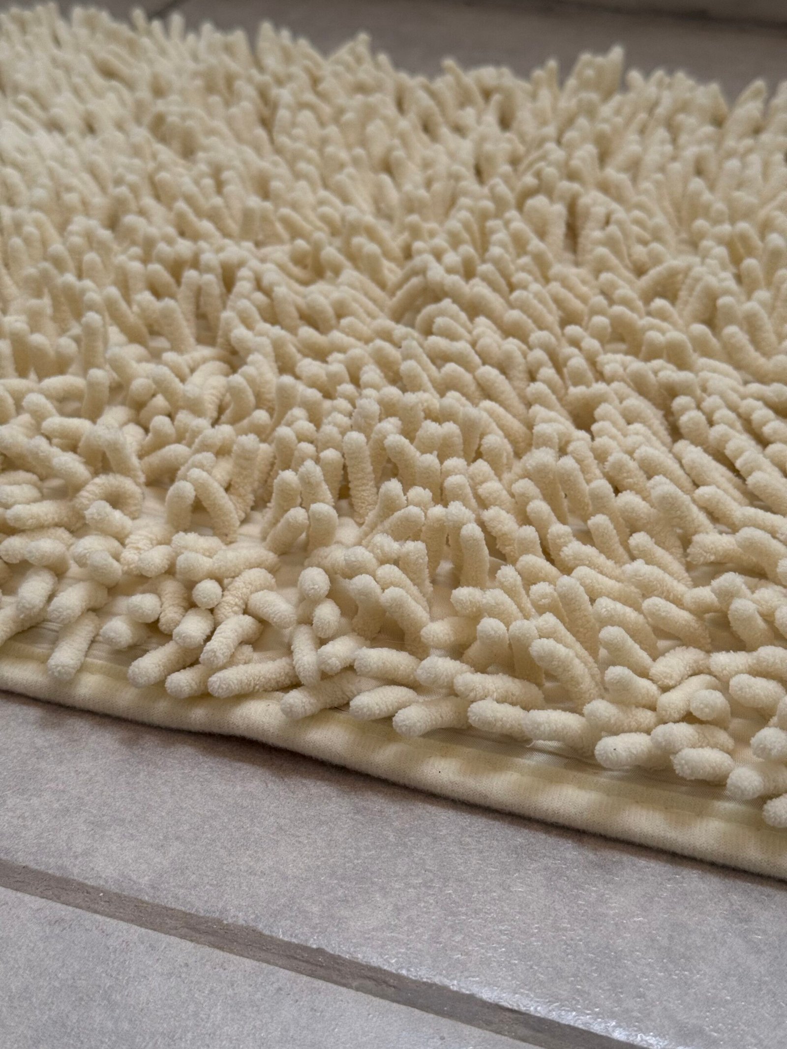 ALFOMBRA SHAGGY RECTANGULAR COLOR: NATURAL CON ANTIDESLIZANTE. MEDIDAS: 40 cm x 60 cm