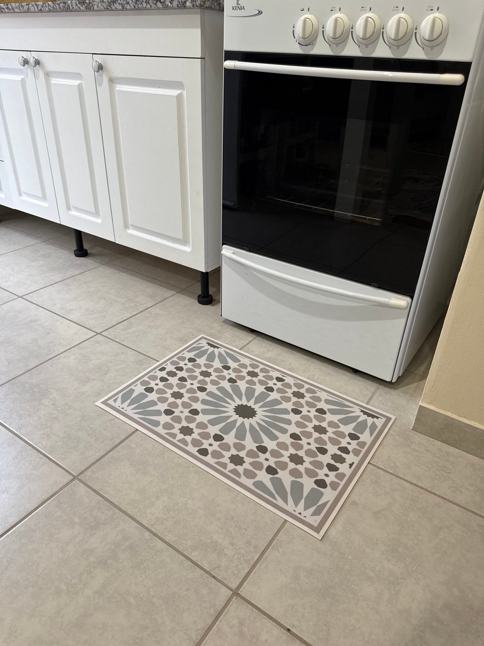 ALFOMBRA VINILICA 40 cm x 60 cm Diseño FLOR. Ideal para cocina o el lugar que mas te guste. PROTEGE SUELO DE MANCHAS, DERRAMES, Y DESGASTES. FACIL DE LAVAR, IMPERMEABLE, ANTIDESLIZANTE.