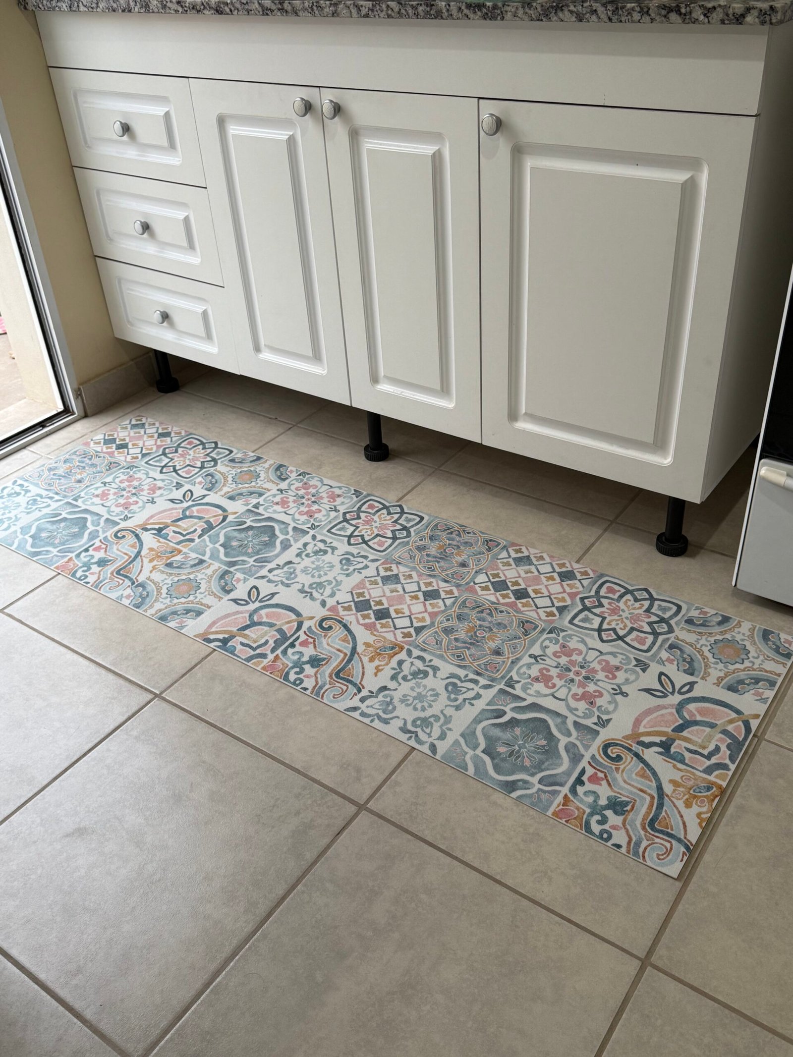 ALFOMBRA VINILICA DISEÑO MOSAICO COLOR PASTEL Ideal para cocina o el lugar que mas te guste. PROTEGE SUELO DE MANCHAS, DERRAMES, Y DESGASTES. FACIL DE LAVAR, IMPERMEABLE, ANTIDESLIZANTE.