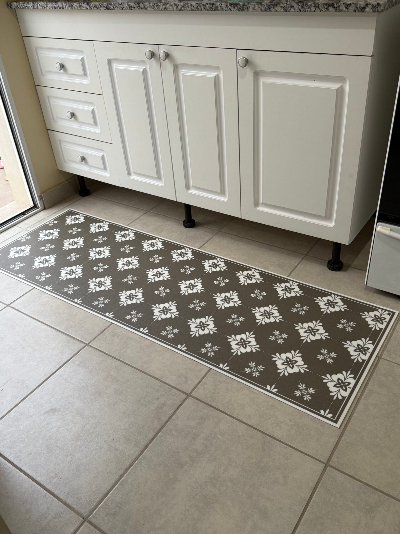 ALFOMBRA VINILICA DISEÑO ROMBOS Ideal para cocina o el lugar que mas te guste. PROTEGE SUELO DE MANCHAS, DERRAMES, Y DESGASTES. FACIL DE LAVAR, IMPERMEABLE, ANTIDESLIZANTE.