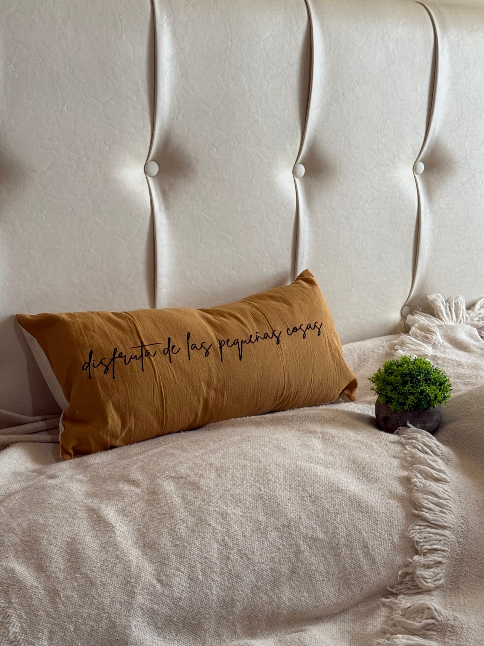 El almohadón con frase “Disfruta de las pequeñas cosas” combina funcionalidad y estilo en un producto único, ideal para embellecer cualquier espacio de tu hogar. Su tamaño compacto de 25cm x 50cm lo convierte en una elección perfecta para decorar sofás, camas o incluso un rincón especial en cualquier habitación. Este diseño cuidadosamente elaborado no solo aporta comodidad, sino que también transmite un mensaje inspirador que te invita a valorar los momentos más simples y especiales de la vida.
