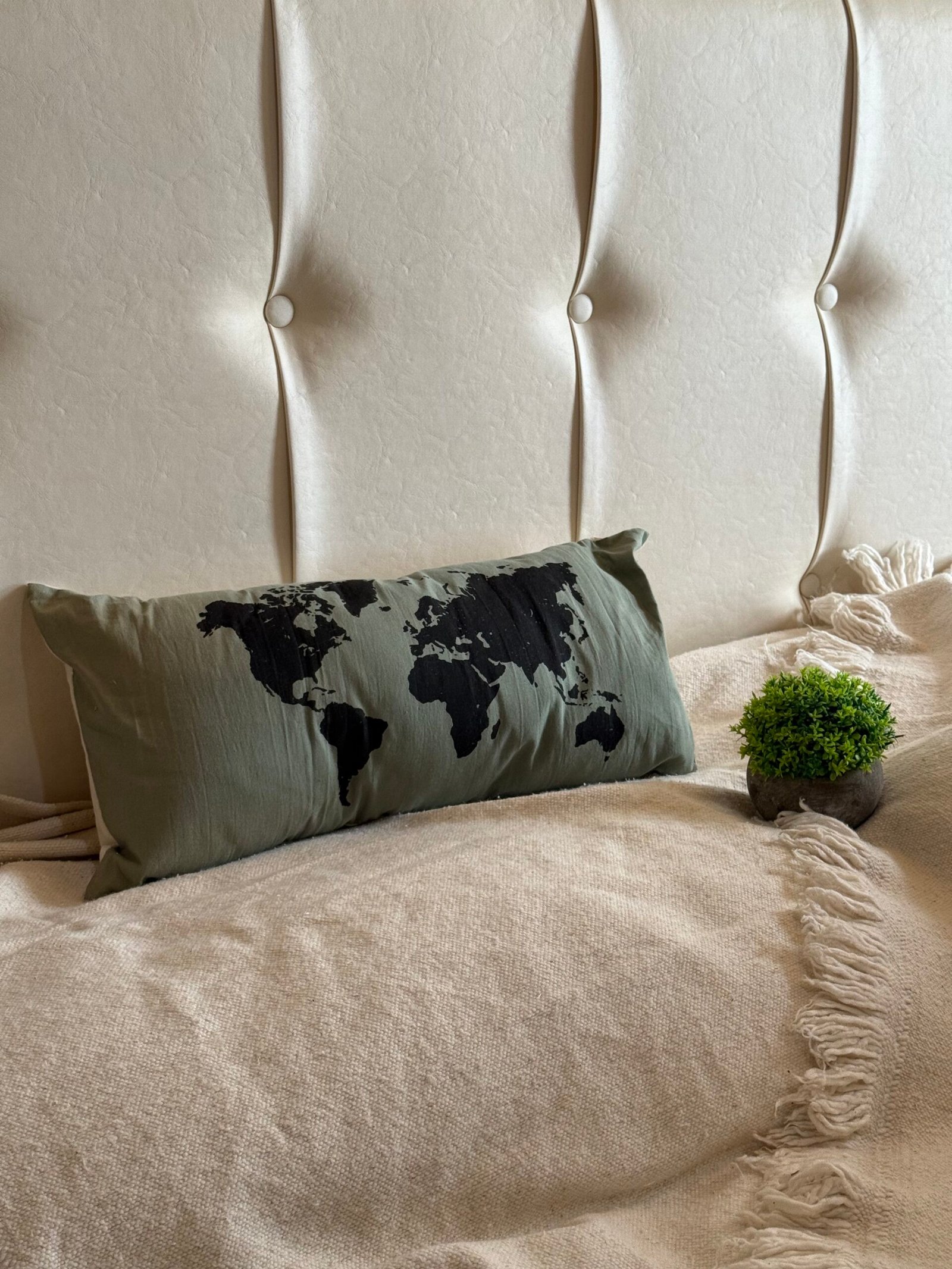 El Almohadón con la Imagen del Mundo de 25cm x 50cm es mucho más que un simple accesorio decorativo. Este producto combina un diseño único con funcionalidad, brindándole un toque de estilo y modernidad a cualquier espacio donde lo coloques. La imagen del mundo que lo adorna no solo es visualmente atractiva, sino que también invita a la reflexión y exploración, convirtiéndolo en una excelente opción para los amantes de la geografía y la decoración contemporánea.