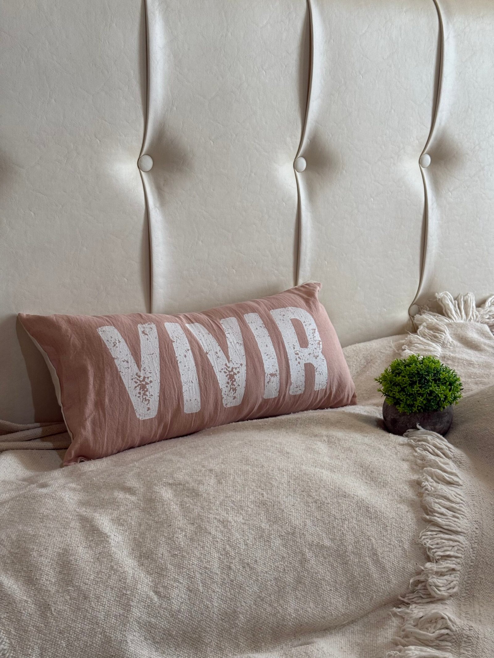 Este precioso almohadón con la frase ‘Vivir’ está diseñado para agregar estilo, comodidad y un toque de inspiración a tus espacios. Con un tamaño ideal de 25 cm x 50 cm, es la pieza decorativa perfecta para sofás, sillas o incluso dormitorios, añadiendo un aire acogedor y personalizado a tu hogar.